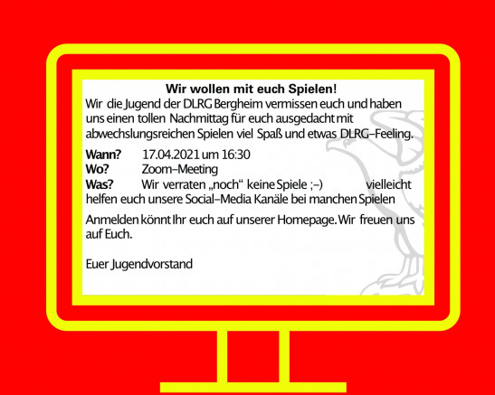 Liebe Mitglieder, wir vermissen euch und das Schwimmbad. Aus diesem Grund hat sich unser Jugendvorstand eine tolle Aktion überlegt und einen spannenden und abwechslungsreichen Spielenachmittag für euch überlegt. Anmelden kann sich jedes Mitglied unserer Ortsgruppe und als Hilfestellung lohnt sich ein Blick auf die Social-Media Kanäle unserer Ortsgruppe, aber vielleicht auch das Studium unserer Homepage. =) Meldet euch im Jugendbereich unserer Homepage schnell an. Wir freuen uns auf euch! ... Mehr erfahren